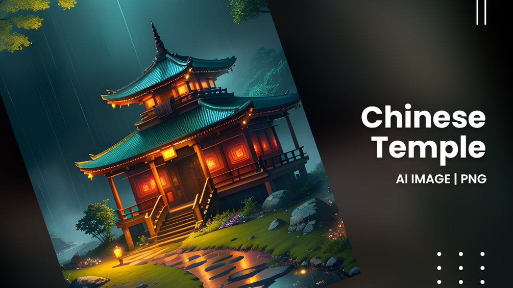 Elevate your creative projects with this AI-generated masterpiece. Let the serene beauty of a Chinese temple at a rainy night captivate your audience, evoke emotions, and transport them to a world steeped in history and tradition.